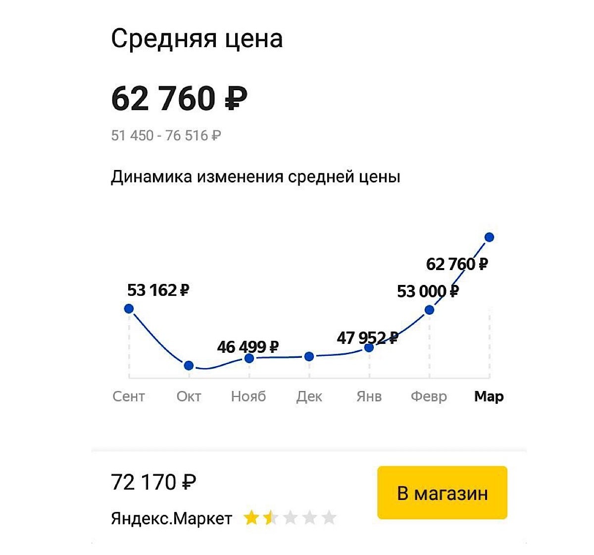 В приложении «Яндекс.Цены», которое фиксирует ценовую динамику, в феврале средняя цена за душевую стойку немецкого бренда Grohe (модель Euphoria XXL) у всех продавцов, подключенных к каталогу «Яндекса», составляла 53 000 рублей, а в марте она выросла до 62 760 рублей. Другой пример — перфоратор японского производителя Makita, цена которого за первые три дня марта практически удвоилась: с 40 236 до 75 213 рублей. В пресс-службе «Яндекс.Маркета» отказались комментировать происходящее, «чтобы не нагнетать обстановку».
