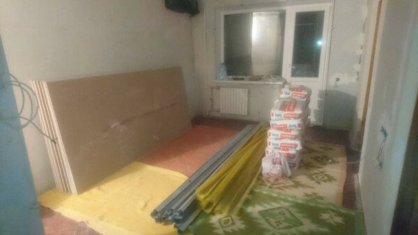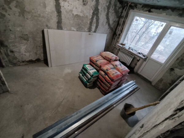 Пятое февраля 2021 года. День, когда я завезла стройматериалы для ремонта хрущевочки. Что там? 10 мешков Ротбанда, 2 мешка Перлфикса, гипсокартон, металлические профили, уголки, сетка штукатурная. Скромненько так... Пол прикрыт старыми одеялами. Заметили? Это я так пыталась сохранить советский паркет.